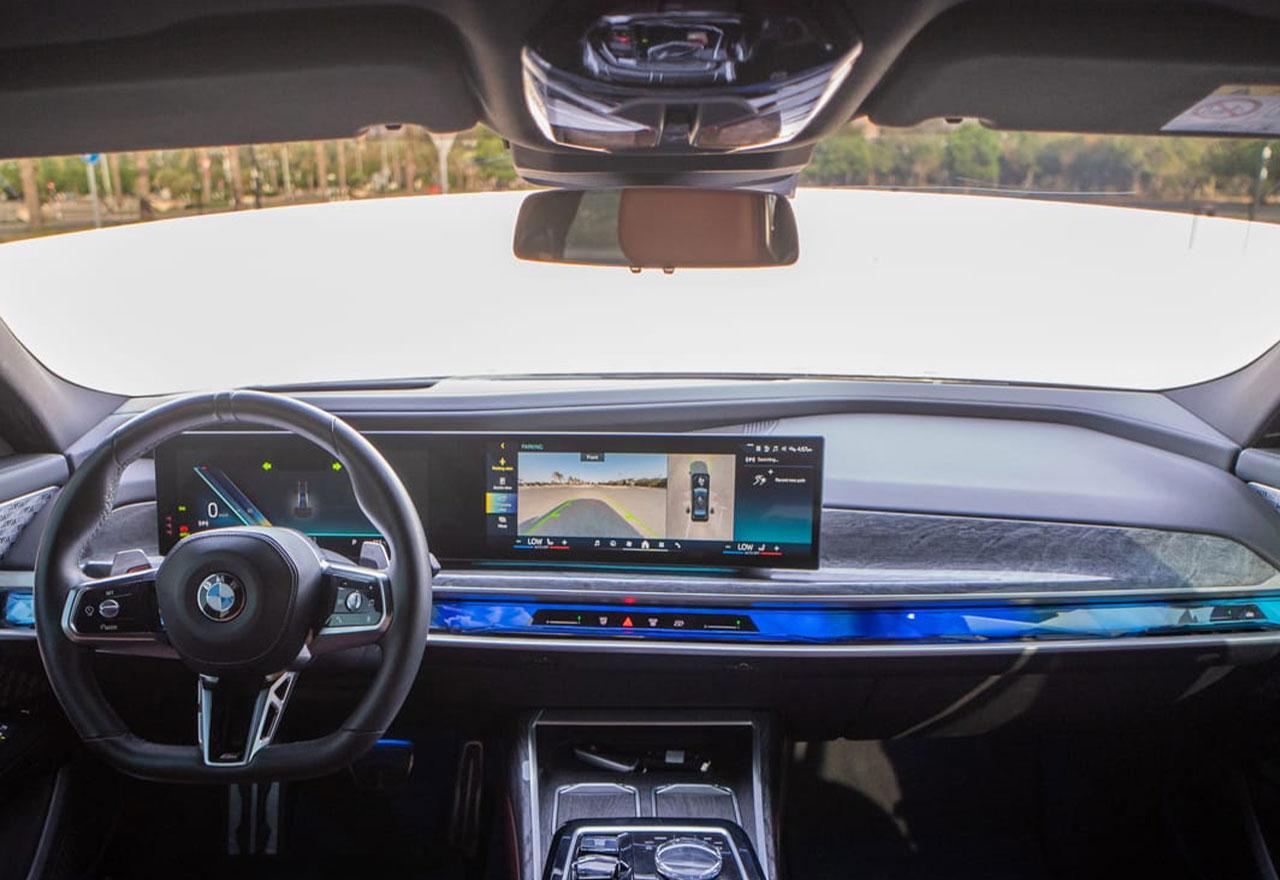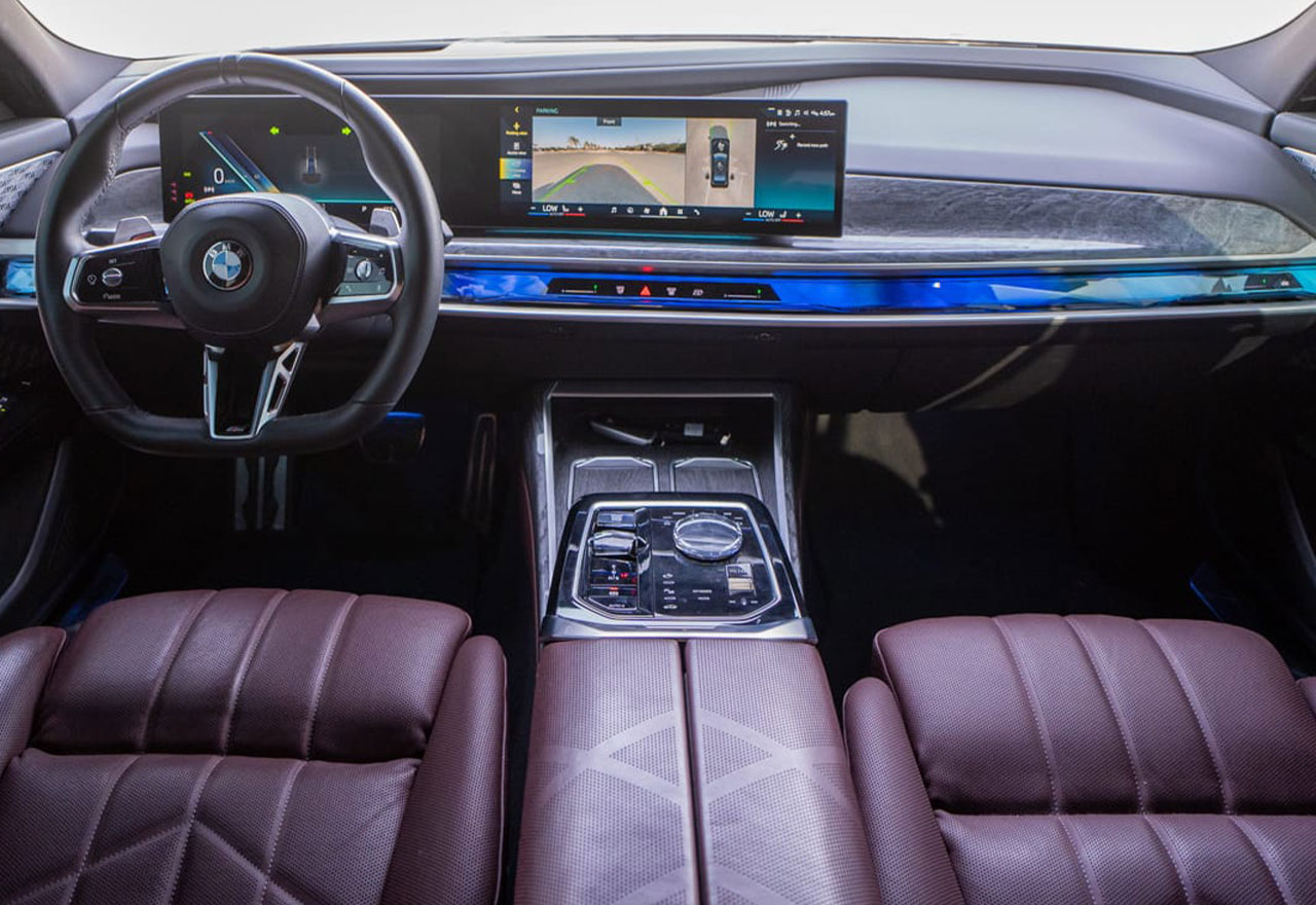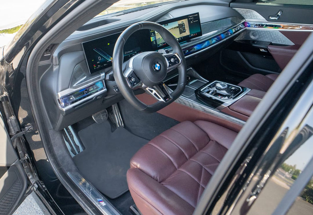 The BMW i7 boasts a lavish, tech-infused interior, featuring premium leather seats, ambient lighting, and a state-of-the-art BMW Theatre Screen for ultimate entertainment. The whisper-quiet electric motor ensures a smooth, serene ride, while advanced air suspension delivers exceptional comfort on every road.