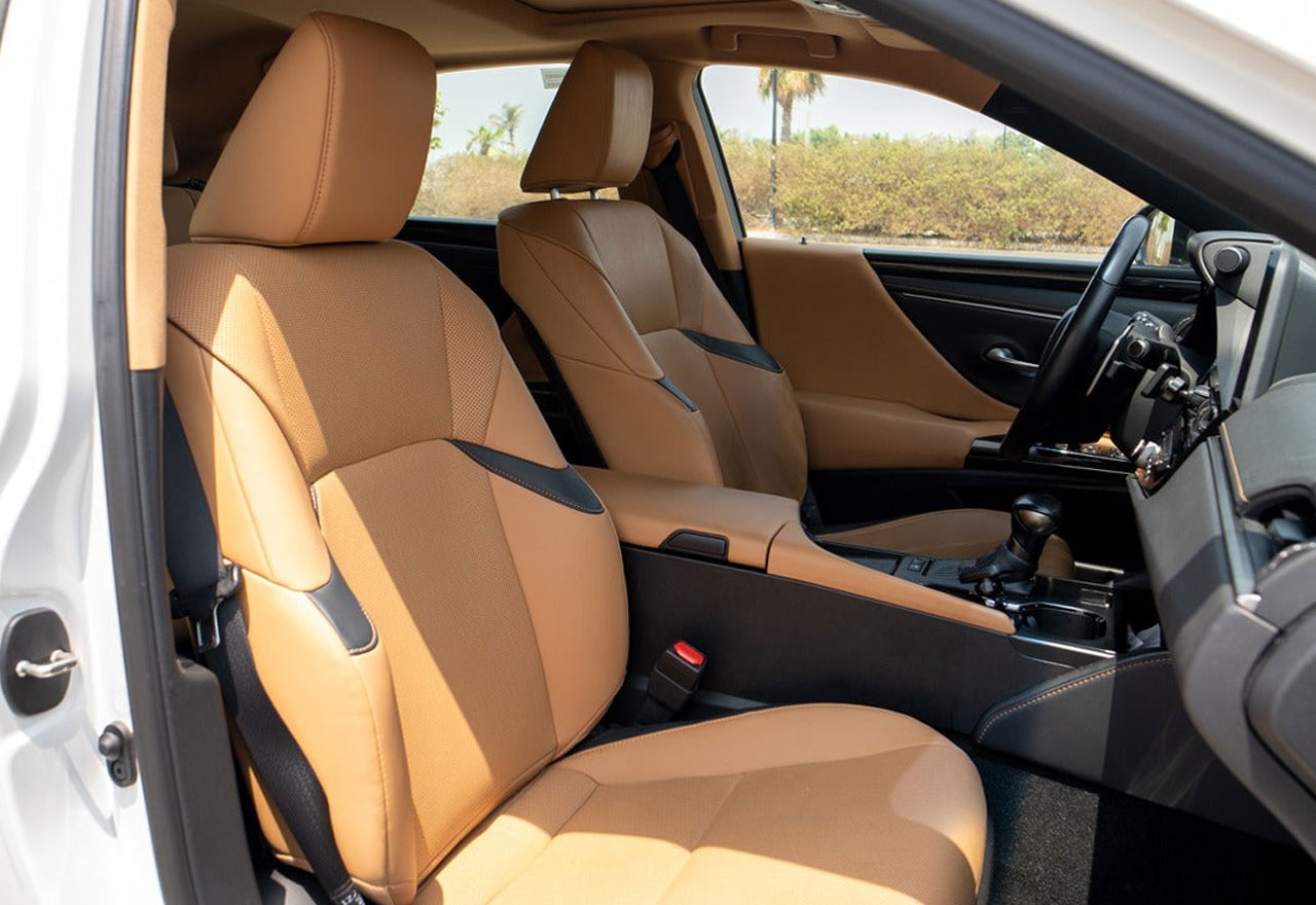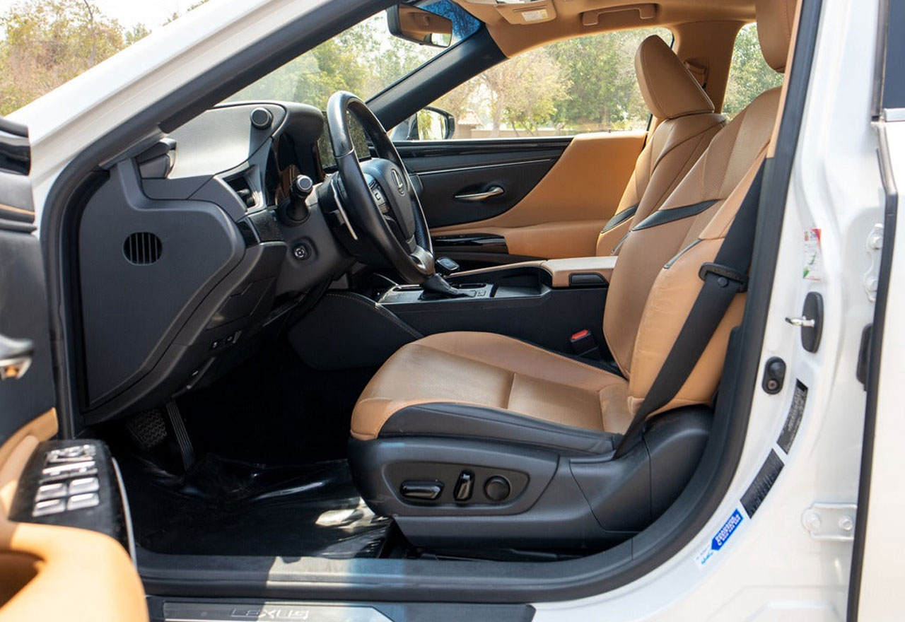 To make every journey pleasurable, its signature entertainment pack includes 10 speakers Premium Sound System | Aux input | 3 USB input | Bluetooth connectivity | voice command | HD Radio | 7″TFT LCD display | SiriusXM satellite radio | Apple CarPlay and Android Auto capability. The Lexus ES35 comes with a comprehensive include suite of driver-assistance features like Adaptive cruise control | automated emergency braking | lane-keeping assist | lane-departure warning | 7 safety airbags | vehicle stability control system | forward-collision warning | blind spot monitor | back-up camera | rear cross-traffic alert | traction control. The comfort has been peculiarly focused in this make with push-button start | multi-zone A/C | 10Way power-adjustable front seats| 8Way driver seat | automatic LED headlights | dual-zone automatic climate control | keyless entry | faux-leather upholstery | powered mirrors with auto-dimming capability | powered windows & steering wheel | air filtration | powered sunroof or more. Hire Lexus ES 350 With Chauffeur in dubai and get ready to witness innovation & class in many facets