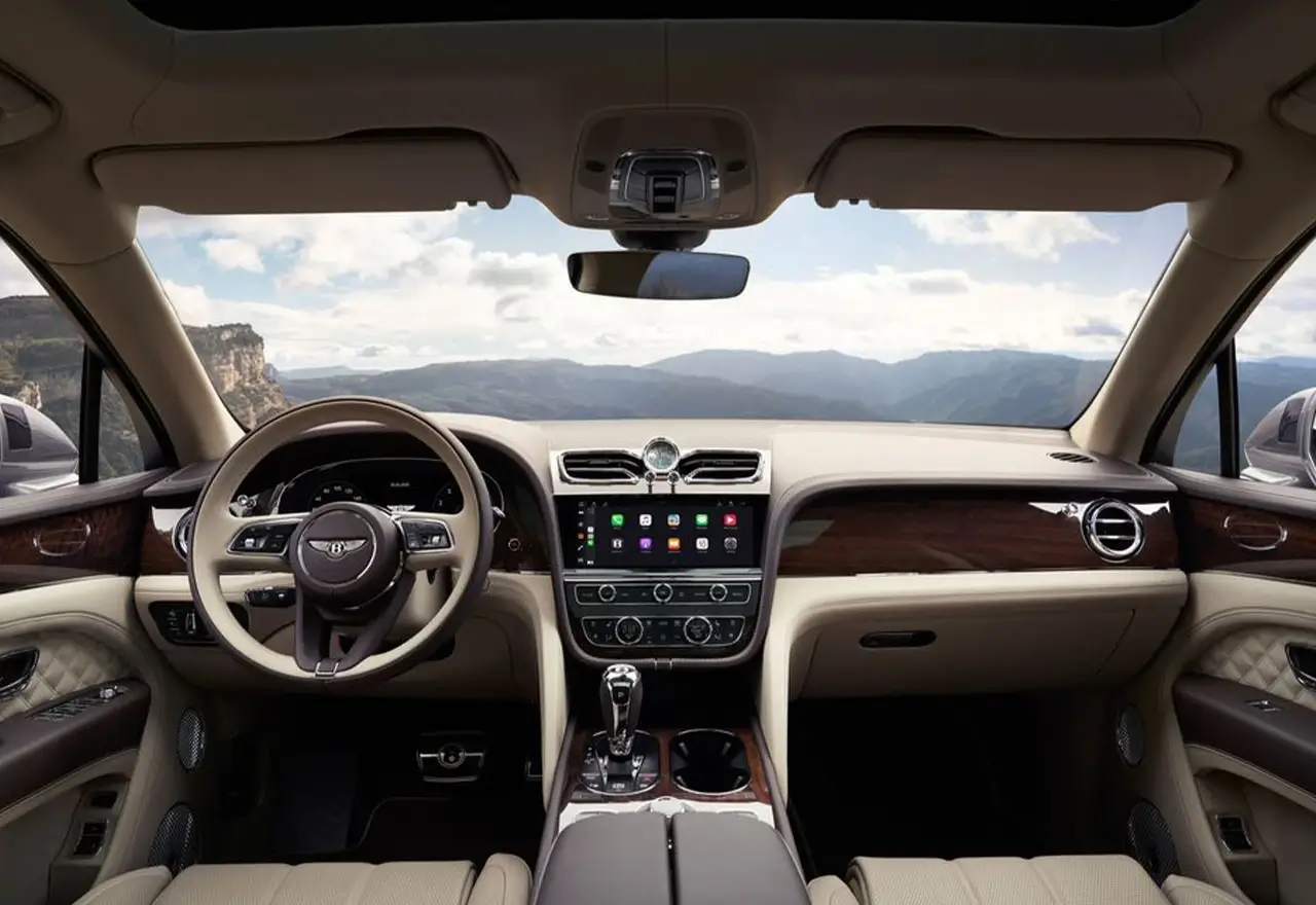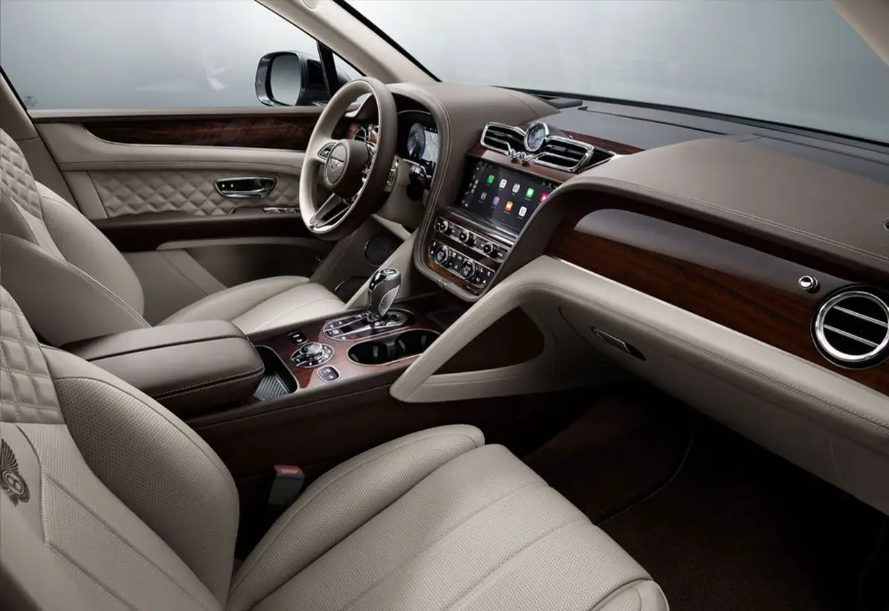 A new 10.9-inch touchscreen screen, improved dashboard design, Apple CarPlay support, an updated rear-seat entertainment center, and a wireless phone charging station are all included in the Bentayga's interior.