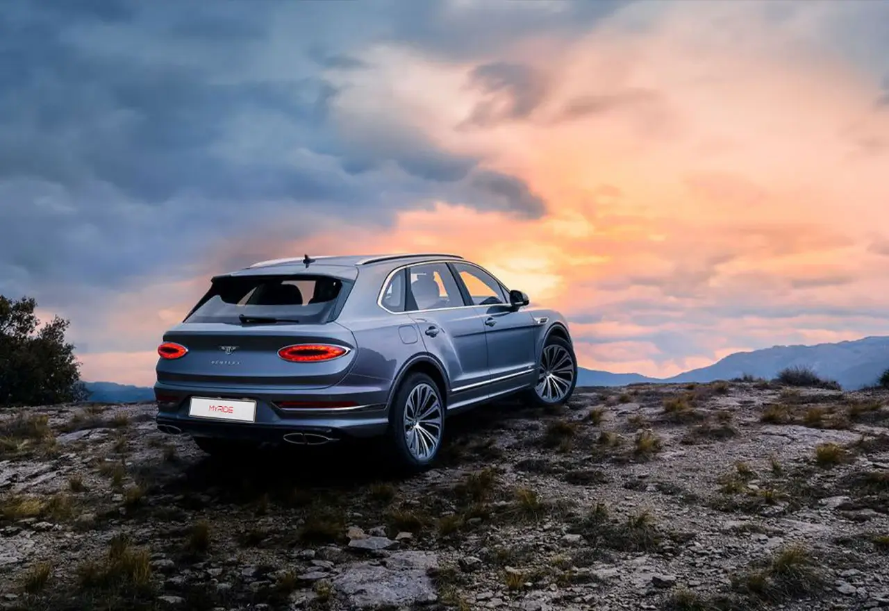 Bentley modified the Bentayga's look with a more prominent front, updated tail lamps, and modernized tires. It borrows design influences from the latest Continental GT coupe and Flying Spur sedan.