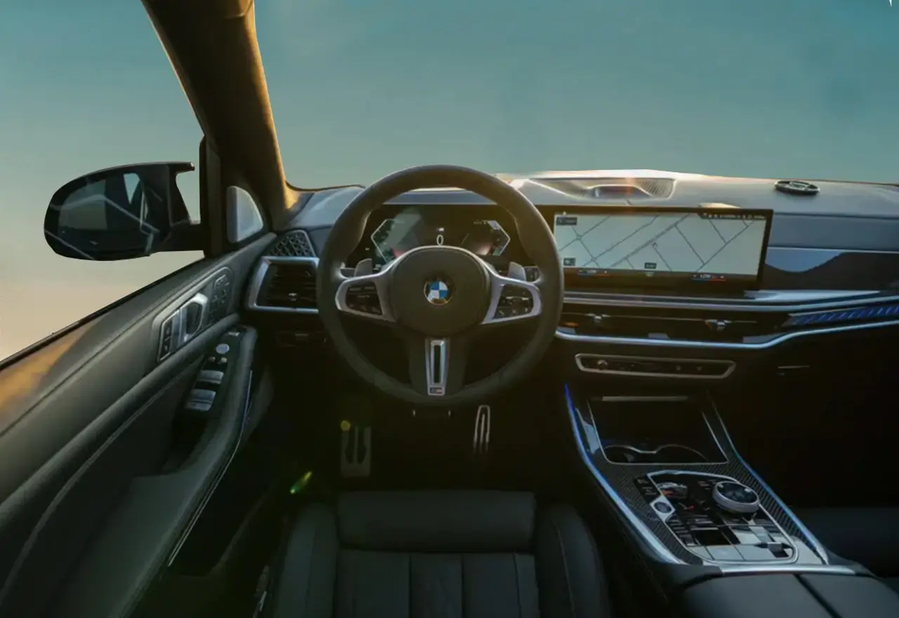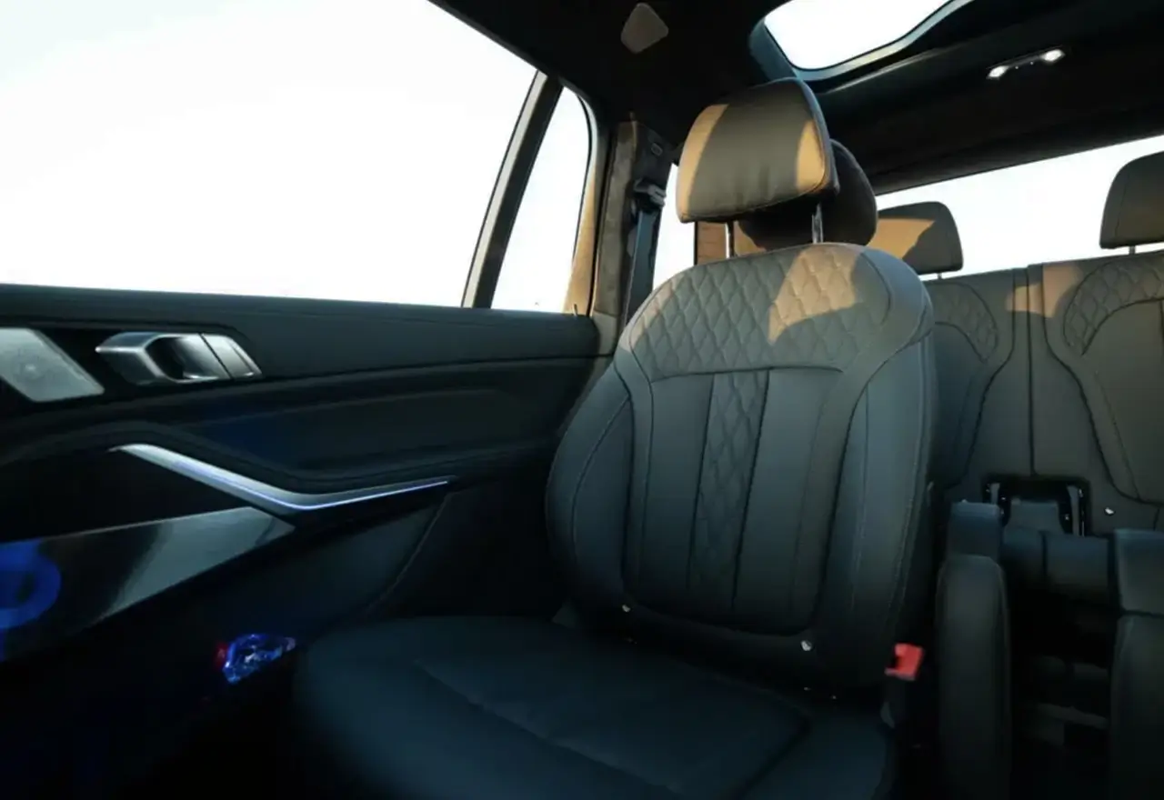 The interior of the X7 M60i is expected to be spacious and luxurious, with ample room for up to seven passengers. High-quality materials are expected to be used throughout the cabin, including leather upholstery, wood trim, and aluminum accents. The seats are expected to be comfortable and supportive, with multiple adjustments to suit the driver's preferences.