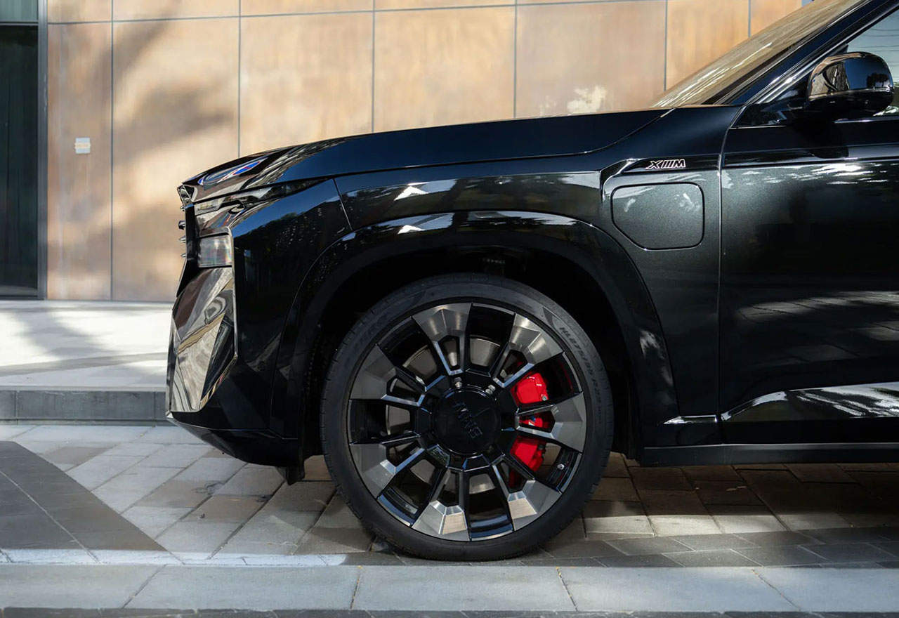 The BMW XM is a visual powerhouse. With its sculpted lines, aggressive front grille, split headlights, and quad exhausts, the XM commands attention wherever it goes. Its large 23-inch wheels and M-specific design elements further emphasize its dominant personality.