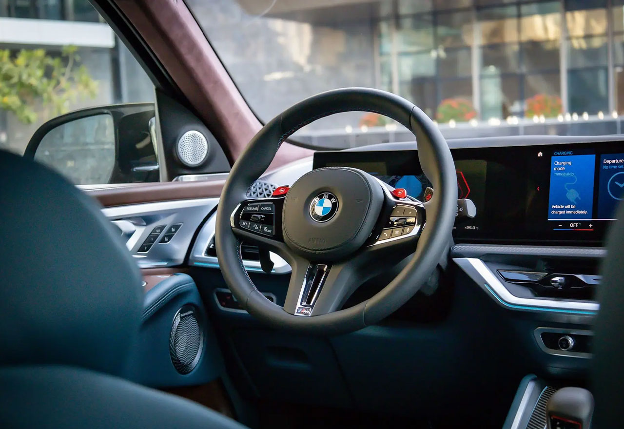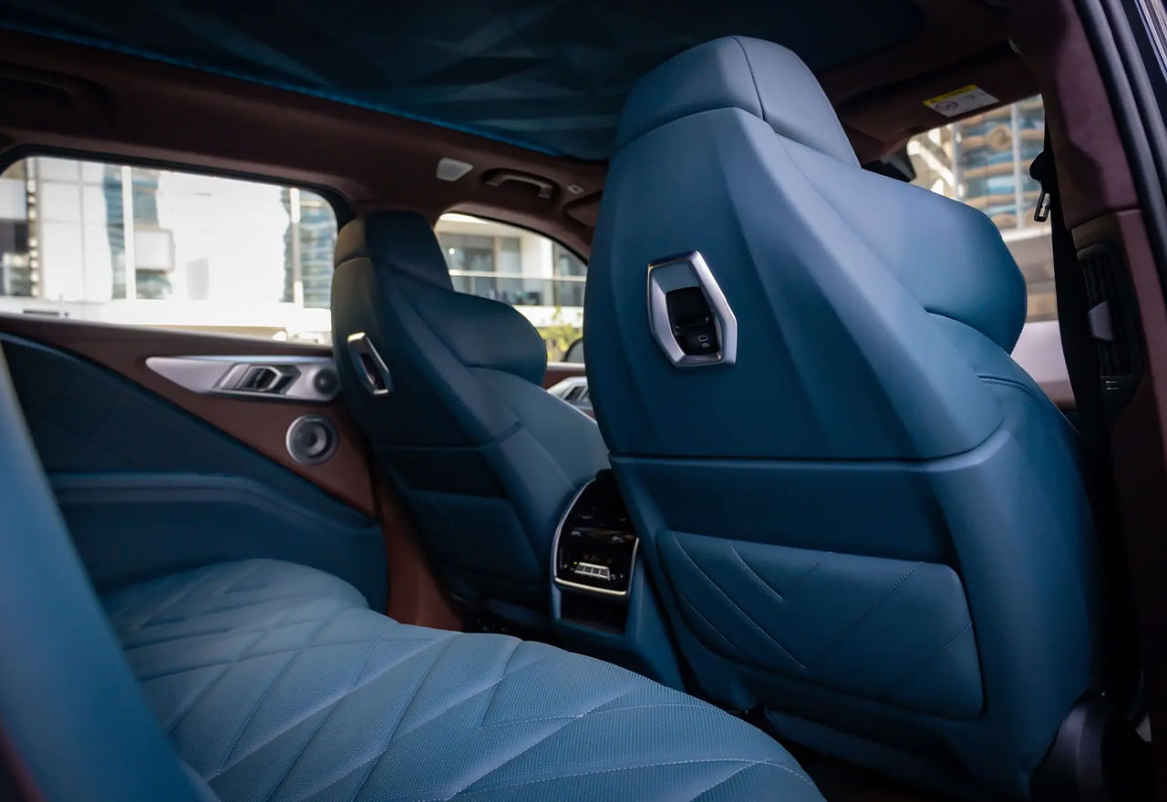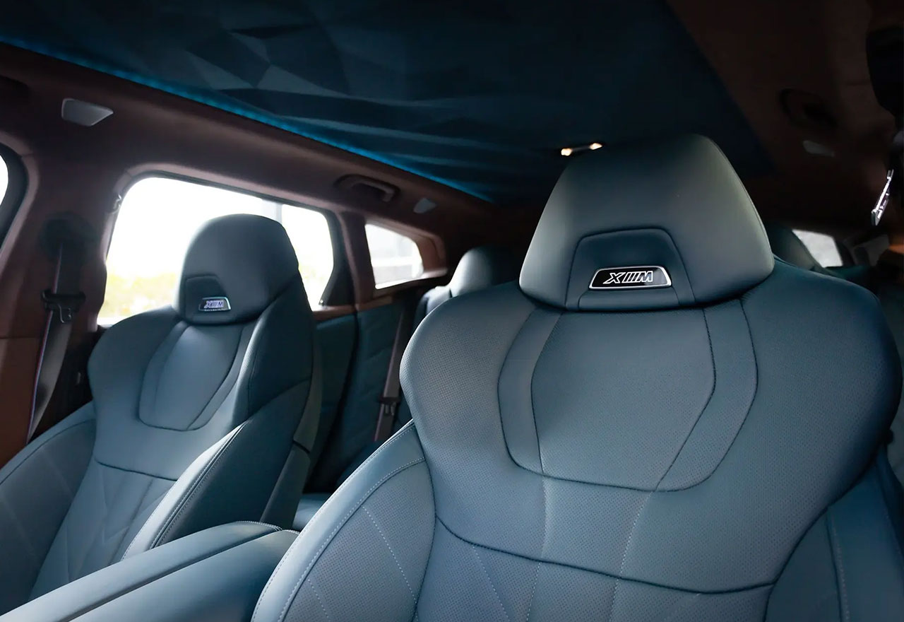Inside the BMW XM, you're welcomed by a driver-centric cockpit and lavish rear seating designed to deliver maximum comfort. The cabin is filled with high-end materials like Merino leather, carbon fiber, and ambient lighting for a truly premium feel.