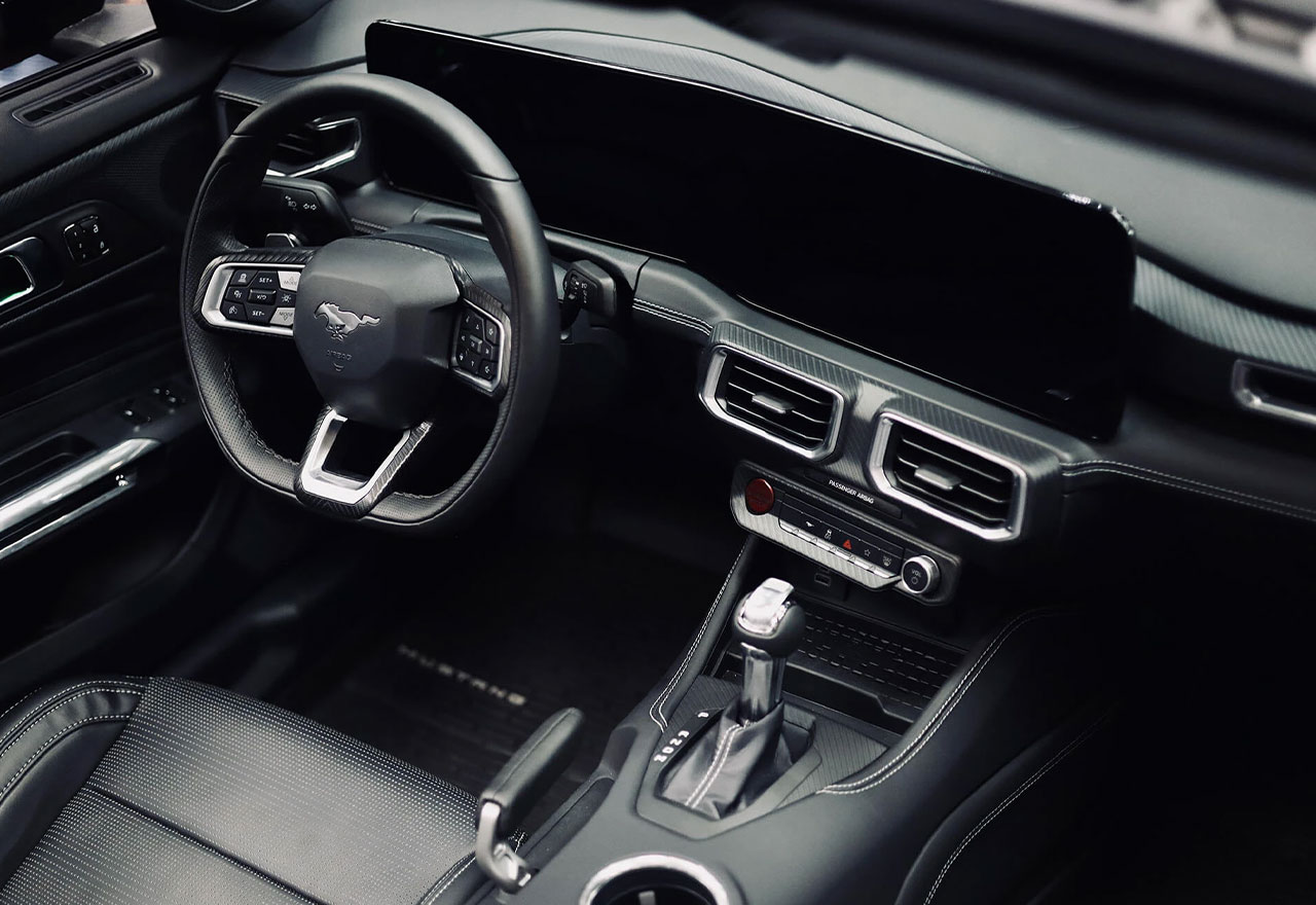 Step inside the Mustang, and you’ll be surrounded by a premium driver-focused cabin equipped with cutting-edge features: