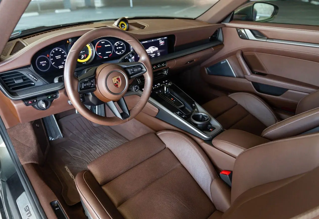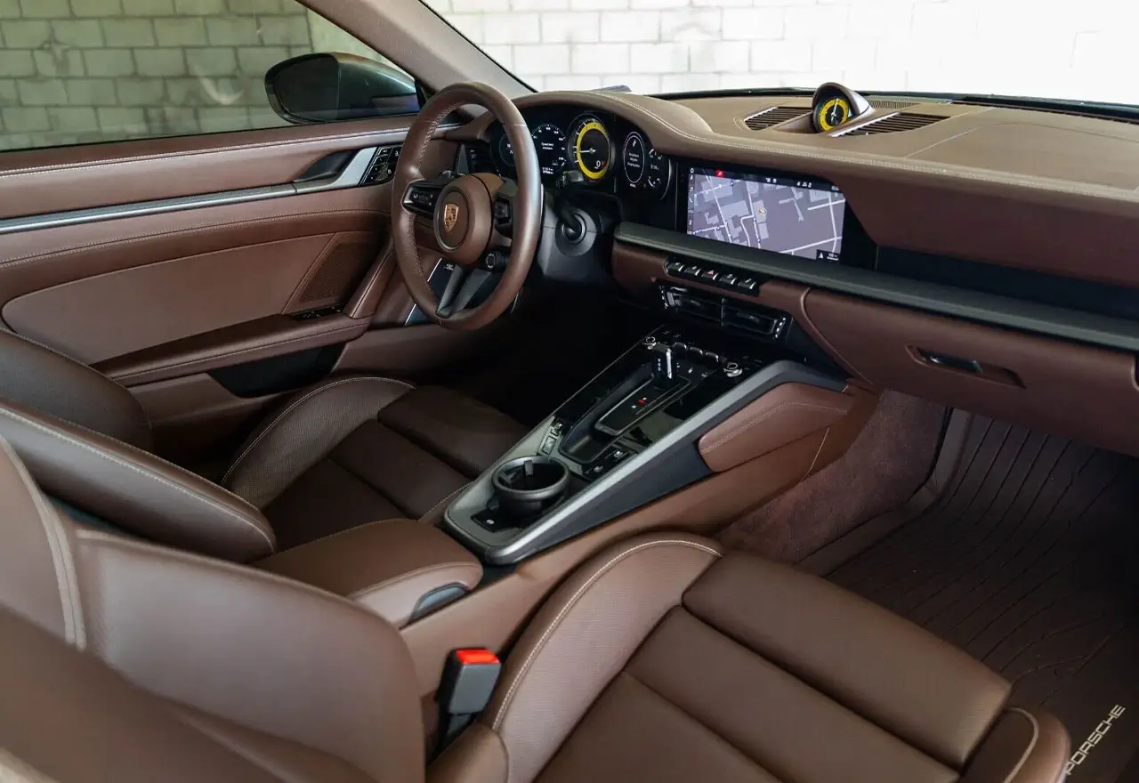 Porsche 911 Carrera rental in dubai for its valuable characteristics, including a 10.9-inch touch screen, Porsche Stability Management, Porsche Torque Vectoring, Electric power-assisted steering with a variable steering ratio, automatic headlights, daytime running lights, 4-wheel disc brake, and much more. Such features ensure comfort, security, and speed.