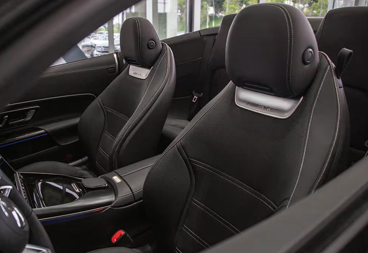 ✔ AMG sports seats with heating, cooling, and massage functions.