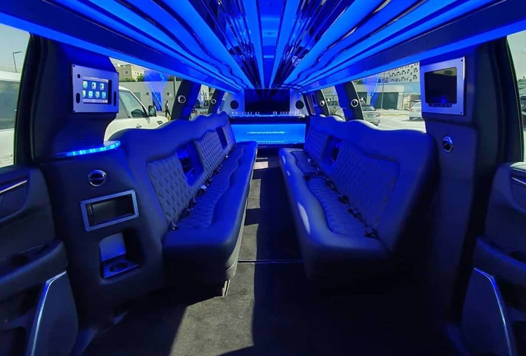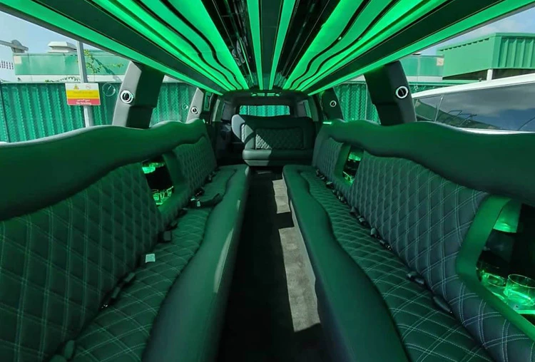 The interior of the Escalade Limousine creates a sophisticated and opulent ambiance. The plush leather seating, elegant wooden accents, and ambient lighting create a refined and comfortable cabin. The limousine also features a range of amenities, including a mini-bar, privacy divider, and climate control, ensuring a premium and personalized travel experience.